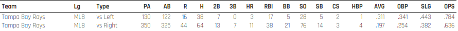 So the Rays have found their new Kevin Kiermaier, but what exactly does that mean? The Rays have a couple options. The first, because both of these players are opposite handed of one another, is to platoon them in center field. Unfortunatley, when looking at the splits between Kiermaier and Margot in 2019, they again have very similar stat lines.
