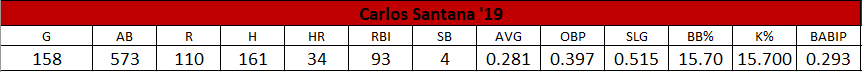 Let’s get right into the next value pick, Carlos Santana. Here is Santana’s line for 2019.