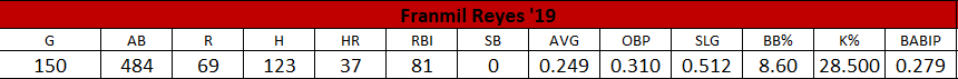 Let’s take one more look at more of a pure power play that could produce numbers similar to Rosario. Franmil Reyes.